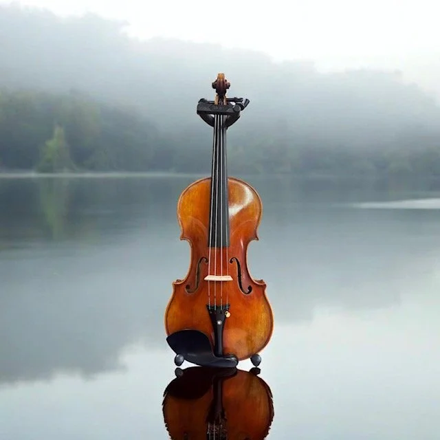 A visual stunner that shines bright under the showroom lights. The bold antiqued finish is a deep red-brown over a golden ground that gives it a fiery disposition. The tone is also bold, with an extremely clear voice; big sound potential throughout, yet with a uniquely rich quality that carries evenly across all registers. The Johannes Köhr 515 is an excellent instrument for intermediate players seeking more range and personality. Adjusted with Thomastik Dominant A, D & G strings with Pirastro Gold Label E (ball end).