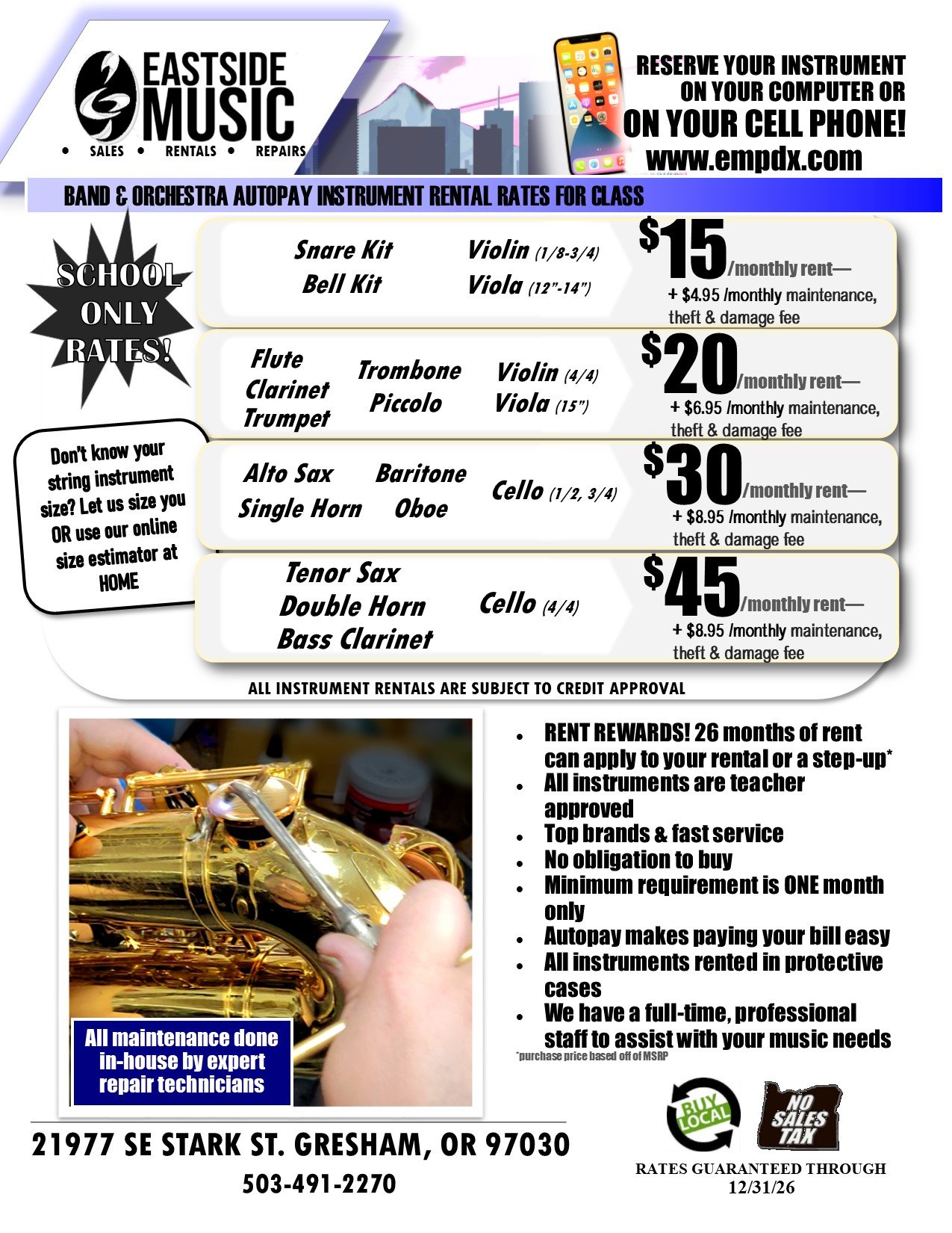 RESERVE YOUR BAND OR ORCHESTRA INSTRUMENT